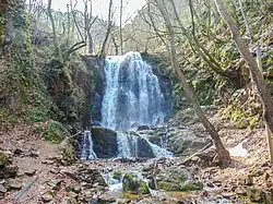Kolešino Falls (Macedonian: Колешински Водопад) is a waterfall located above the village of Kolešino in the Municipality of Novo Selo in the southeastern region of North Macedonia.
