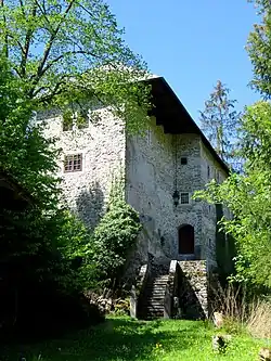 Kolovrat Castle (sometimes also Spodnji Kolovrat,[2] German: Unterkolowrat[2]) is a castle built on a small hill southeast of the settlement (46°9′53.09532″N 14°52′37.04016″E / 46.1647487000°N 14.8769556000°E). It was first mentioned in written documents dating to 1256. It was badly damaged in the 1895 earthquake. After 1945 part of the castle was restored.[7]