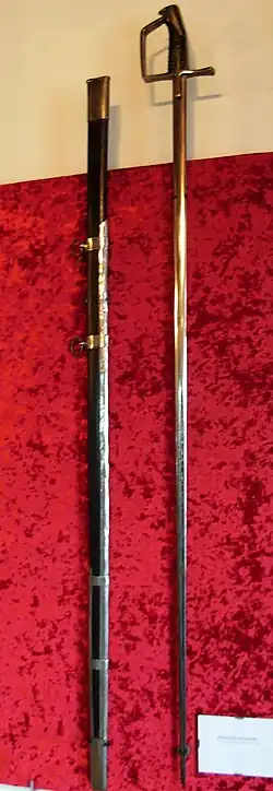 A koncerz (Polish pronunciation: [ˈkɔn.t͡sɛʂ]) is a type of sword used by Polish-Lithuanian cavalry in the Renaissance period. It is a narrow and long thrusting sword, generally used by a type of heavy cavalry (husaria, the famed Polish hussars) and optimized to defeat body armor, either by piercing directly through the metal links of mail armour or by thrusting at the exposed gaps between the plates of plate armour, but was not used to cut or slash at enemy combatants.[1]
