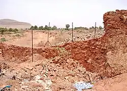The tata had a rectangular form 115 metres (377 ft) long by 107 metres (351 ft) wide. It measured 6 metres (20 ft) high with a thickness at the base of 2 metres (6 ft 7 in).[3]