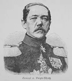 During the Austro-Prussian War Voigts-Rhetz served as chief of staff of the First Army, led by Prince Friedrich Karl of Prussia. Voigts-Rhetz was an opinionated soldier and critical of Chief of Staff Helmuth von Moltke, however was intelligent and courageous.[4] In this function he contributed to the Prussian victories at Münchengrätz, Gitschin and Sadowa. After the war he was made governor-general of the newly annexed Province of Hanover and commander of the newly established X Corps.