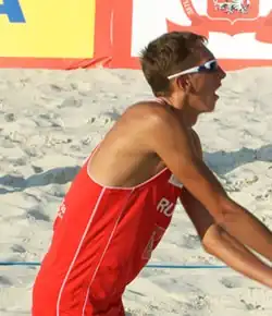 Konstantin Sergeyevich Semenov (Russian: Константин Сергеевич Семёнов; born 9 June 1989, Tokmok) is a Russian beach volleyball player.[7] He competed for Russia at the 2012 Summer Olympics with his teammate Sergey Prokopyev finishing at the shared 9th place.[8] As of August 2013 he has won one tournament in the FIVB World Tour and two in the CEV European Tour alongside two other podium spots in the World Tour.[9] At the 2016 Summer Olympics, Semenov and his new teammate Vyacheslav Krasilnikov finished as fourth.[7] Since the end of 2017, Semenov plays with Ilya Leshukov. They qualified for 2020 Summer Olympics in Tokyo.