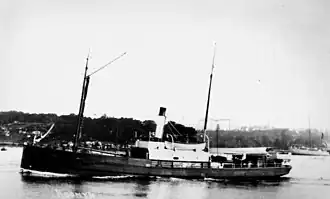 On Tuesday 12 May 1896 the Steamer Koonya was sold at auction to the Moruya Steam Navigation Company.[23] Koonya was placed into weekly trips between Sydney and Moruya. The vessel had a relatively uneventful life till her shaft broke off near Jervis Bay on 10 June 1897. She was towed into the bay by the steamer Murray during the night. It took approximately a fortnight till the vessel returned to her regular journeys.[24][25]