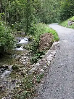 The Rapallo border between Yugoslavia and Italy passed through the area and the remnants of border guard posts are found nearby. During the Second World War, the Partisans maintained a checkpoint at house number 10 in the village.[4]
