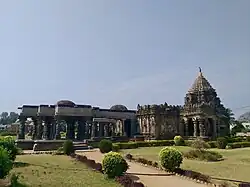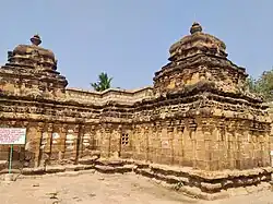 In Karnataka their most famous temples are the Kashivishvanatha[16] temple and the Jain Narayana temple at Pattadakal, both of which are UNESCO World Heritage sites.[17] Other well known temples are the Parameshwara temple at Konnur, Brahmadeva temple at Savadi, the Settavva, Kontigudi II, Jadaragudi and Ambigeragudi temples at Aihole, Mallikarjuna temple at Ron, Andhakeshwara temple at Huli, Someshwara temple at Sogal, Jain temples at Lokapura, Navalinga Temple at Kuknur, Kumaraswamy temple at Sandur, at Shirival in Gulbarga and the Trikunteshwara temple at Gadag which was later expanded by Kalyani Chalukyas. Archeological study of these temples show some have the stellar (multigonal) plan later to be used profusely by the Hoysalas of Belur and Halebidu.[18] One of the richest traditions in Indian architecture took shape in the Deccan during this time and one writer calls it Karnata dravida style as opposed to traditional Dravida style.[19]