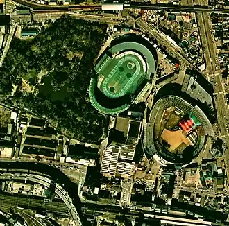 Korakuen Velodrome (後楽園競輪場) was a velodrome in Tokyo, Japan. Tokyo Dome was built on this site.