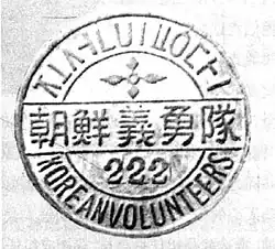 - ^ a b "조선의용군" [Chosŏn Volunteer Army]. Encyclopedia of Korean Culture (in Korean).