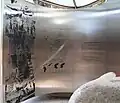 A central walk-way leads to a semi-enclosed contemplative space. A boulder from a Korean battlefield is a focal commemorative point with the words "Peace and Independence" inscribed in Korean. Inside are images, maps and text etched into stainless steel panels telling the story of the Australians who served in the Korean War, on the left telling the general story and on the right telling of particular involvement of the Navy (nine ships and an air group), Army (3 RAR, and elements of 1 & 2 RAR), and Air Force (77 Squadron and other elements).
