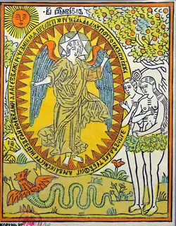 The Koren Picture-Bible is a printed part-bible including a series of 36 woodcuts with hand-colouring illustrating the books of Genesis and Revelation. It is the outstanding example of Russian woodcut artistry in the 17th century and of the "Koren-style" woodcut, which is characteristic of the best of the Russian religious and secular popular prints or lubok (pl. lubki) in the first half of the 18th century. The Koren Bible may be considered an example of the (misnamed) Biblia Pauperum. Twenty blocks illustrate the Creation and the Life of Adam and Eve, while sixteen illustrate Revelation. It may originally have consisted of forty woodcuts, intended, as was Piscator's Picture-Bible, to provide material for personal devotions during the forty days of Lent.