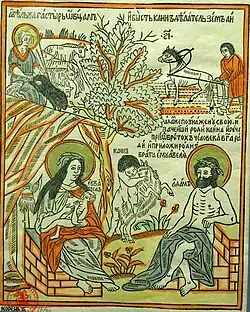 7. ^ Discussed in Farrell, "Some Early Russian Woodcuts (Lubki) in the Context of the Schism, in A Window on Russia: Papers from the V International Conference of the Study Group on Eighteenth-Century Russia, Gargnano, 1994. Ed. Maria DiSalvo and Lindsey Hughes. La Fenice Edizioni, 1996; p.195; Vera Grigorievna Briusova, Russkaia zhivopis 17 veka (Moscow: Izdatelstvo "Iskusstvo", 1984), p.169.