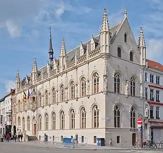 The City Hall (Dutch: ⓘ) of Kortrijk, West Flanders, Belgium, is situated on that city's Grote Markt (main square), between Leiestraat and Rijselsestraat. The facade in late-Gothic or early Renaissance style is adorned with statues of the Counts of Flanders.