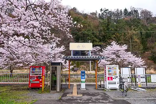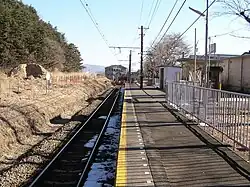 The station is unstaffed, and consists of one side platform serving a single bidirectional track, with the station structure located on the south side of the track.[1] It has a waiting room but no toilet facilities.[1]