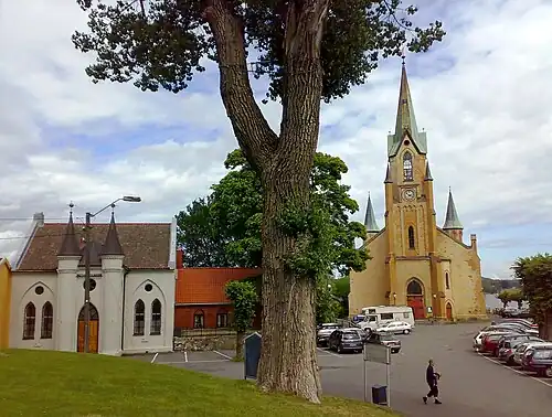 Kragerø Church (Norwegian: Kragerø kirke) is a parish church of the Church of Norway in Kragerø Municipality in Telemark county, Norway. It is located in the town of Kragerø. It is the church for the Kragerø parish which is part of the Bamble prosti (deanery) in the Diocese of Agder og Telemark. The yellow, brick church was built in a long church design in 1870 using plans drawn up by the architect Georg Andreas Bull. The church seats about 700 people.[1][2][3]