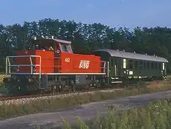 The freight traffic is hauled by AVG diesel locomotives 462 and 464, which were built by Maschinenbau Kiel. Locomotive 462 was originally owned by the SWEG and was taken over by the AVG with its takeover of the line. During the time of the SWEG it had the number of 101 and sometimes it was also hauled passenger trains.