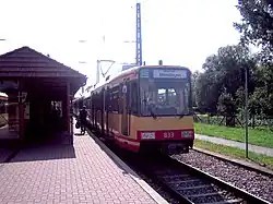 The Kraich Valley Railway (German: Kraichtalbahn) is a branch line in southwestern Germany running from Bruchsal to Menzingen. It is now integrated as line 32 of the Karlsruhe Stadtbahn.
