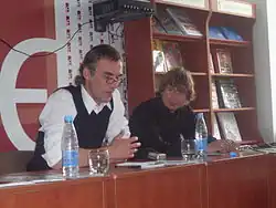 Lavon Volski had some ideas about what to do next. He planned to record two new albums. One album was supposed to be international and contain songs in different languages. Another album was to consist of songs dedicated to various holidays. Before these two albums, it was decided to release a maxi-single consisting of four songs that would precede the future albums. However, during the work on the single a lot of new material was accumulated. Thus, it was decided to record a full album. The album Radio Krambambula 0,33 FM (Belarusian: Радыё Крамбамбуля 0,33 FM) was released in 2004. Siarhei Mikhalok and Alexander Kulinkovich joined Krambambula at that time again. Gunesh Abasova (Azerbaijani: Günəş Abbasova), a Belarusian singer of Azerbaijan origin, took part in the recording.[12][13] Another guest star was the Ukrainian musician Kuzma Skryabin from the band Skryabin. He recorded song "Neighbours" (Belarusian: Суседзі) in a duet with Volski. The text in this song is in two languages: Ukrainian and Belarusian. Kuzma Scriabin himself expressed a desire to sing the Belarusian text, and Lavon Volski was offered to sing the Ukrainian text.[14] The song "Tourists" (Belarusian: Турысты), recorded in a duet with Siarhei Mikhalok, became this album’s hit.[15]