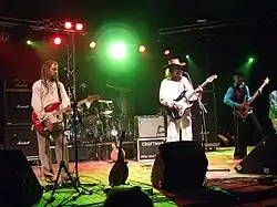 Krambambula is a Belarusian band from Minsk, started by Lavon Volski (also the founder of N.R.M.) in 2001. The name of the band is derived from a popular Belarusian alcoholic tincture of the same name. The band performs humorous and satirical songs, often on an alcoholic theme.[1] Krambambula was banned in Belarus from 2011 to 2017.