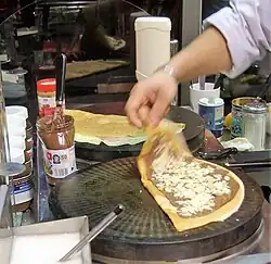 Krampouz is a French manufacturer of domestic and professional cooking appliances. Founded in 1949 in Pouldreuzic, in Brittany,[1] it is most well known for its range of crepe makers,[2][3] but the company also produces waffle makers, panini grills, and planchas. The name Krampouz is derived from the Breton word krampouezh, meaning crepe.[4]