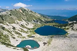 Kremenski Lakes (Bulgarian: Кременски езера) are a glacial lake group in the Pirin mountain range, southwestern Bulgaria.[1][2] They are located in the Pirin National Park, a UNESCO World Heritage Site. The group consists of nine lakes, seven permanent and two drying, in the narrow salient Kremenski cirque.[3] Kremenski Lakes are surrounded by the summits of Sivria (2,591 m) to the northwest and Dzhano (2,668 m) to the southeast, as well as the Kremenski ridge which ends with Kremenski peak (2,503 m).[1][4][5] They drain into the river Retizhe, a right tributary of the Mesta.[6]