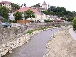 The Krems is a river in Waldviertel in northern Lower Austria. Its drainage basin is 366 km2 (141 sq mi).[2] There are actually two rivers: the so-called "Große Krems" (Greater Krems), denoting either the whole river system or the main tributary only, and the smaller one called "Kleine Krems" (Lesser Krems). The Krems originally flowed into the Danube by Krems an der Donau, but when the Danube power station Altenwörth was built at Altenwörth (part of Kirchberg am Wagram), the mouth of the river — together with that of the Kamp — was moved to Altenwörth.