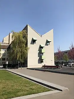 The Kreuzberg Tower and Wings are a complex of three buildings, designed by the American architect John Hejduk. Located close to Checkpoint Charlie, the project was completed in 1988, shortly before the Berlin Wall came down in 1989. It is considered an iconic work of 20th-century architecture, and one of very few that Hejduk realised during his lifetime.