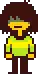 Kris is the protagonist of Deltarune. They are controlled by the player through a red soul for most of the game. They are the human child of the monsters Toriel and Asgore Dreemurr, the sibling of Asriel Dreemurr, and a resident of "Hometown", a small town home to many characters from Undertale as well as new characters not seen in Undertale.[1] In Chapter 1, Kris and their bully Susie discover a fantastical realm called a "Dark World" in the school's storage closet.[1] They meet a Darkner—a being who comes from a Dark World—named Ralsei. He explains that the three of them are heroes prophesied to save both worlds by sealing "Dark Fountains", the sources of the darkness which Dark Worlds form out of.[1] They are attacked by Prince Lancer, who was ordered by his father, King, to stop them from reaching the Fountain, only for them to befriend him and defeat the King, who was protecting the Fountain. After the Fountain is sealed and the Dark World fades away, Kris and Susie return to the Light World, vowing to return the next day. When Kris returns to their bedroom, they remove their soul, allowing them to act without player input.