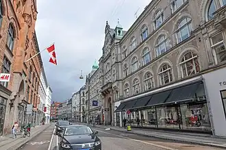 Kristen Bernikows Gade is a street in central Copenhagen, Denmark. It extends north from the major shopping street Strøget to Grønnegade where it turns into Gammel Mønt. Together with Bremerholm, its extension to the south, it forms one of only two places where car traffic crosses pedestrianized Strøget on its way from Kongens Nytorv to the City Hall Square, the other being at Gammeltorv-Nytorv. The street is named for the nobleman Christian Barnekow, one of Christian IV's men, whose city home was located on the site. Most of the buildings date from a widening of the street in around 1900. They include the shopping archade Galleri K.
