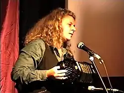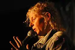 Kristina Olsen (born May 26, 1957) is an American folk singer-songwriter and multi-instrumentalist who also incorporates influences from acoustic blues.[1] As at 2022 she has released 13 albums (four on the recognised independent label Philo Records); all of her Philo albums achieved between 3 and 4 stars (represented as dog bones) in the 1998 MusicHound Folk:Essential Album Guide.[2] On her Philo albums her accompanying musicians include U.S. guitarist Nina Gerber while several of her later albums include collaborations with the Australian cellist Peter Grayling. Her 2014 album Chemistry is a collaboration with U.S. guitarist Peter Snell who has previously worked with the well known songwriter and performer Lyle Lovett. Olsen is also noted for her extensive touring schedule both nationally and internationally.[2]