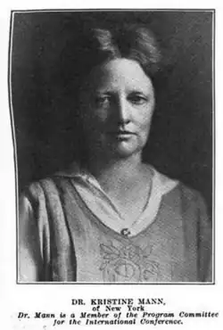 Kristine Mann (August 29, 1873 – 1945) was an American educator and physician, with a particular interest in working women's health. She was an early practitioner of psychoanalysis in North America.