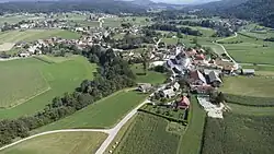 The local parish church is dedicated to Saints Cosmas and Damian and belongs to the Roman Catholic Diocese of Novo Mesto. It dates to the 12th century with numerous alterations over the centuries.[6]