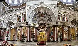 The Russian Orthodox Church reinstalled the cross on the main dome in 2002 and (for the first time since 1929) served the Divine Liturgy in the cathedral in 2005.[4] In 2013, the Patriarch of Russia, with Prime Minister Dmitriy Medvedev and his spouse attending, conducted the ceremony of grand reconsecration in the now fully restored cathedral.