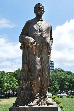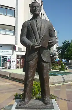 In North Macedonia, Misirkov is regarded as the forefather of the Macedonian nation and as the most prominent Macedonian cultural and national worker in the early 20th century, who set the principles of the standard Macedonian.[48] Misirkov is also the author of the first scientific magazine in Macedonian and because of his contributions to the Macedonian national cause, he has been widely regarded as the greatest Macedonian of the 20th century by the Macedonian public.[3] After World War II, the new Macedonian historiography started to regard Misirkov's persona highly. His work and ideas, especially On Macedonian Matters, became a major field of exploration for scholars from the Macedonian Academy of Sciences and Arts, who used them as one of the basis to support the claim that there was a Macedonian national consciousness as early as the 19th century.[59][60] In his honor, many books and scientific works have been published and the Institute for Macedonian language "Krste Misirkov" is named after him.[61]