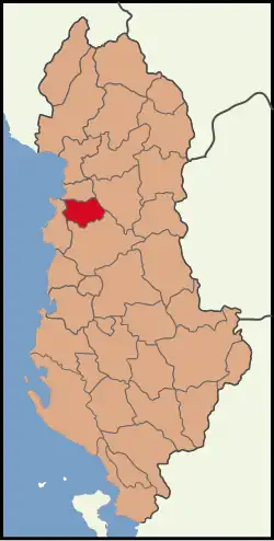 Krujë District (Albanian: Rrethi i Krujës) was one of the 36 districts of Albania, which were dissolved in July 2000 and replaced by 12 counties. It had a population of 64,357 in 2001, and an area of 372 km2 (144 sq mi).[1] It is in the centre of the country, and its capital was the town of Krujë. The area of the former district is coextensive with the present municipality of Krujë, which is part of Durrës County.