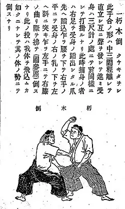 ![]() Kuchiki taoshi in Tenjin Shin'yō-ryū jujutsu | |