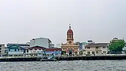 Today, it is best known for the Catholic community (mainly of Portuguese descendants, in 2014, they have a population of about 1,850 people in 293 households[3]) around Santa Cruz Church, but the wider neighbourhood also includes the areas around Wat Kanlayanamit, Kudi Khao Mosque, and the Chinese Kuan An Keng Shrine. All linked to each other by bicycle lane and promenade along the Chao Phraya River. Conservation and revitalization efforts beginning in 2008 have made the neighbourhood a cultural tourism destination.[4][5][6][7]