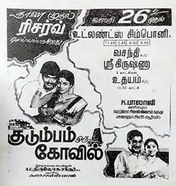 - ^ "Kudumbam Oru Kovil (1987)". Raaga.com. Archived from the original on 27 December 2018. Retrieved 27 December 2018.