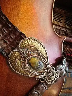 Although distancing himself from a more serious future endeavor in fashion design,[5] King's interest in ancient craftsmanship and jewellery's role-distinguishing social function has resulted in the creation of what he calls wearable art, which mainly consists of lavishly decorated belts.[10]