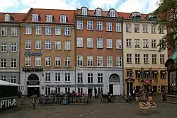 Built in the 1730, No. 14 on the corner with Sankt Gertruds Stræde is the only building of the square that survives from the rebuilding of the square in the years after the Fire of 1728.[7][8] No. 5, 7, 9–11 and 15 (designed by Christian Frederik Hansen) all date from the 1810s.