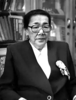 Kuluypa Konduchalova (Kyrgyz: Күлүйпа Кондучалова; 15 June 1920 – 7 September 2013) was a Kyrgyz-Soviet teacher, politician and cultural minister. She is most-known as a patron of culture and for the work she did to promote Kyrgyz arts to international audiences. She was honored as a Hero of the Kyrgyz Republic, twice honored with the Order of Manas in the 1st and 3rd degrees, decorated as a Commander of the Order of Lenin and was twice awarded the Order of the Red Banner of Labour.