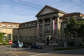 Architects Rittmeyer & Furrer designed the original museum Beim Stadthaus in 1915, and a 1000 m2 modernist addition was designed by Gigon/Guyer in 1995.[2][3] The building "Beim Stadthaus" also contains Winterthur's natural history museum.