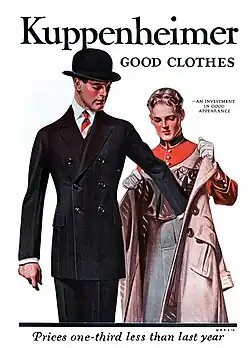 • Kuppenheimer is known for commissioning American illustrator J.C. Leyendecker to create hundreds of paintings to be used in their advertisements.[13]