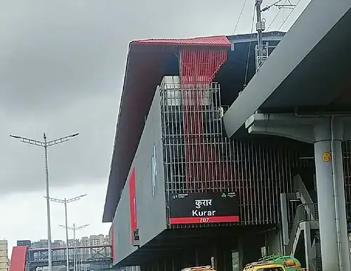 Kurar is an elevated metro station on the North-South corridor of the Red Line 7 of Mumbai Metro in Mumbai, India. This metro station was inaugurated on 2 April 2022 by Prime Minister Narendra Modi. [1][2][3]