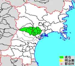colored area=original extent in Meiji period; green=present area plus Tomiya city (3)