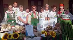 In the 21st century, initiatives are emerging from local communities to preserve the memory and recreate the craft traditions of Kurpie Białe.[13] The dissemination and promotion of folk art from Kurpie Białe are supported by institutions, organizations, and local governments. As a result, it becomes attractive to visitors to the region. At the central level, the material culture and folklore of Kurpie Białe are supported in various ways by the Ministry of Culture and National Heritage, the Masovian Voivodeship Marshal's Office, the Masovian Institute of Culture, the Cepelia Foundation, and the Leopold Kronenberg Bank Foundation.[138]