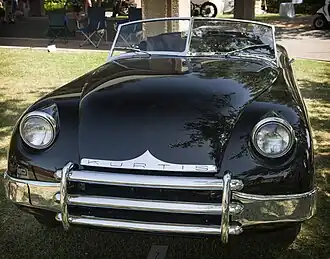 The KSC was designed as a two-seat, aluminum-body sports car by Frank Kurtis.[3][4][5] A two-door convertible, it had a front-engine, rear-wheel-drive layout.[2] The prototype KSC was designed in 1949, and built on a 1949 Ford chassis.[6][7] It was powered by a six-cylinder, supercharged Studebaker engine.[7] The only instrument mounted on the prototype's dashboard was a tachometer, although the car also featured a telescoping steering wheel.[7] Low-slung in appearance, the prototype was built with fiberglass body panels, removable plexiglass side windows, and a removable hardtop.[7][8]