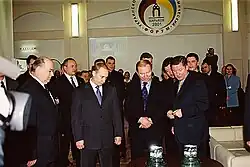 In mid-December 2001, under the leadership of Kushnaryov, a Ukrainian-Russian economic business forum was organized in Kharkiv with the participation of Ukrainian President Leonid Kuchma and Russian President Vladimir Putin. At the same time, Kharkiv was proclaimed "the capital of Russian-Ukrainian relations." On 7 November 2003, Yevhen Kushnaryov, signed an agreement with the Governor of the Belgorod Oblast, Yevgeny Savchenko, on the creation of the Euroregion "Slobozhanshchina". Within the Euroregion, relations between areas in many humanitarian and financial sectors have developed. In 2004, the Euroregion "Slobozhanshchina" was included in the Association of European Border Regions as an observer.