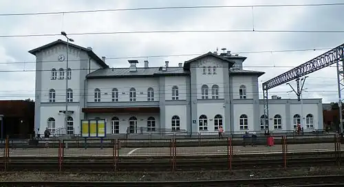 Kutno railway station is a railway station in Kutno, in the Łódź Voivodeship, Poland. The station opened in 1861 and is located on the Warsaw–Kunowice railway, Łódź–Kutno railway, Kutno–Piła railway and Kutno–Brodnica railway. The train services are operated by PKP, Koleje Mazowieckie, Koleje Wielkopolskie, Łódzka Kolej Aglomeracyjna and Polregio.