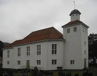 Kvinesdal Church (Norwegian: Kvinesdal kirke) is a parish church of the Church of Norway in Kvinesdal Municipality in Agder county, Norway. It is located in the village of Liknes. It is the church for the Kvinesdal parish which is part of the Lister og Mandal prosti (deanery) in the Diocese of Agder og Telemark. The white, wooden church was built in a octagonal design in 1837 using plans drawn up by the architect Hans Linstow. The church seats about 430 people.[1][2]