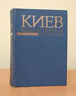 Kyiv: An Encyclopedic Handbook or Kyiv: Encyclopedic Reference Book (Ukrainian: Київ: енциклопедичний довідник, romanizedKyjiv: entsyklopedychnyj dovidnyk; Russian: Киев: энциклопедический справочник, romanizedKiev: entsiklopedicheskij spravochnik) is the first universal encyclopaedic reference book about Kyiv published by the Main Editorial Board of the Ukrainian Soviet Encyclopedia, under the lead editorship of Anatoliy Kudritskiy. It was published in 1981 in Ukrainian. A Russian translation was first published in 1982. The second Russian edition came out in 1985 and 1986, and the third Russian edition in 1986. The book was prepared for the celebration of the so-called 1500th anniversary of Kiev in 1982.