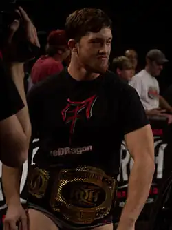 On December 16 at Final Battle 2012: Doomsday, O'Reilly and Bobby Fish (known as reDRagon) faced the reformed The American Wolves (Davey Richards and Eddie Edwards) in a losing effort.[60] At the following iPPV, 11th Anniversary Show on March 2, 2013, O'Reilly and Fish defeated the Briscoe Brothers for the ROH World Tag Team Championship.[61] The same month, they successfully defended the championship against Alabama Attitude (Corey Hollis and Mike Posey), before retaining it at Best in the World 2013 in June in a three-way match against the C & C Wrestle Factory (Caprice Coleman and Cedric Alexander) and S.C.U.M. (Cliff Compton and Rhett Titus).[62][63] They lost the title to the Forever Hooligans (Alex Koslov and Rocky Romero) on July 27, but regained the title from the American Wolves on August 17.[64][65] Over the next several months reDRagon successfully defended the championship against teams including the C & C Wrestle Factory, the Forever Hooligans, and Jay Lethal and Michael Elgin.[66][67] They retained the championship against Outlaw, Inc. (Homicide and Eddie Kingston) at Final Battle 2013 in December and Adrenaline Rush (A. C. H. and TaDarius Thomas) at the 12th Anniversary Show in February 2014.[68][69] On March 8, 2014, reDRagon lost the title to The Young Bucks.[70] ReDRagon regained the tag team championship from The Young Bucks on May 17, at the ROH and New Japan Pro-Wrestling (NJPW) co-promoted pay-per-view War of the Worlds.[71] They successfully defended the championship against The Briscoe Brothers on June 7 and against Christopher Daniels and Frankie Kazarian at ROH's first live pay-per-view Best in the World 2014 on June 22.[72][73] On November 23, reDRagon defeated ACH and Matt Sydal, The Addiction (Daniels and Kazarian), and The Briscoes to retain the ROH World Tag Team Championship and win the Tag Wars tournament.[74] They followed up their victory with successful title defenses against the Time Splitters (Alex Shelley and Kushida) at Final Battle 2014, The Young Bucks in March 2015 at ROH's 13th Anniversary Show, and The Kingdom (Michael Bennett and Matt Taven) at Supercard of Honor IX.[75][76][77] O'Reilly and Fish lost the tag team title to The Addiction at the Ring of Honor Wrestling tapings on April 4.[78] On September 18, 2015, at All Star Extravaganza VII, O'Reilly received a shot at the ROH World Championship, but was defeated when Adam Cole turned on him.[79]